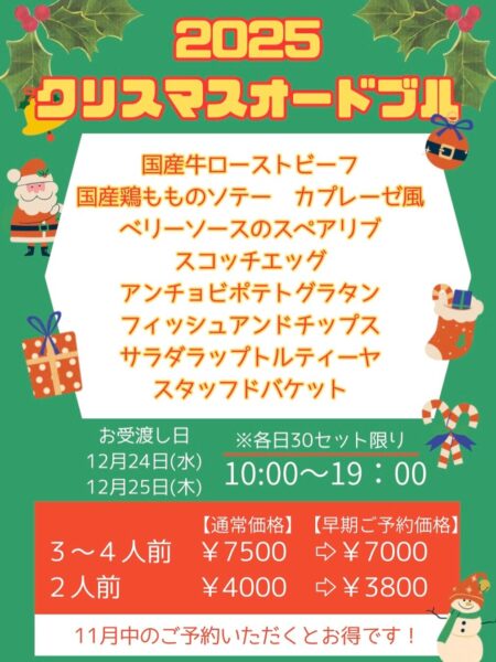 【2025クリスマスオードブル】ご予約受付開始! | お弁当とお惣菜、時々おやつ journalier(ジュルナリエ)